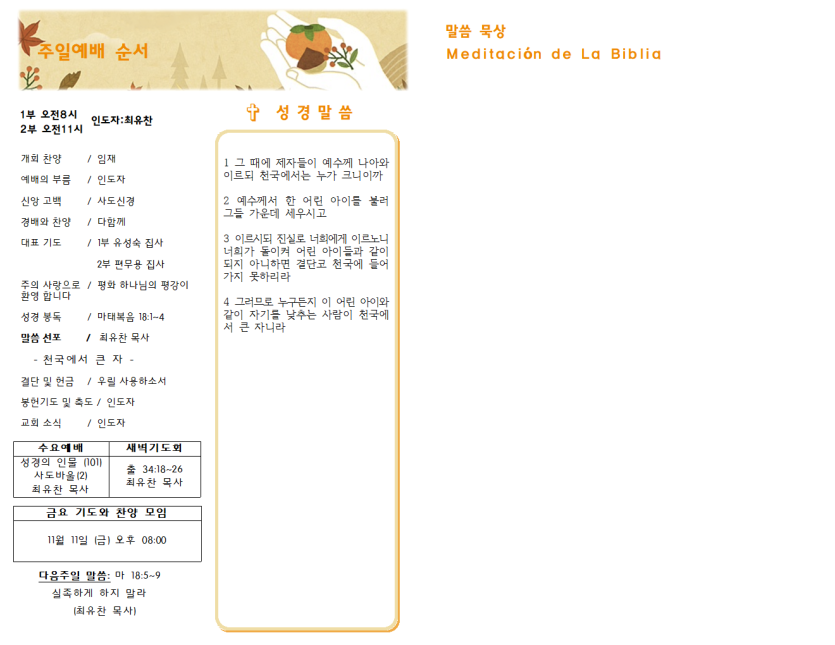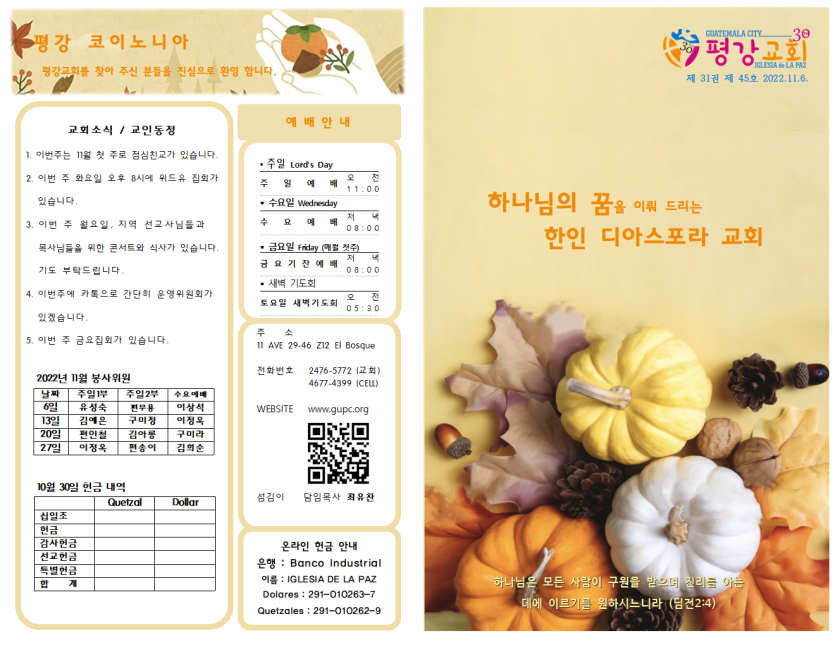 2022년 11월 6일 주일예배 주보 페이지 정보 작성자 과테말라평강교회 댓글 0건 조회 1,763회 작성일 22-11-06 12:41 목록 본문 2022년 11월 6일 주일예배 주보 이전글2022년 11월 13일 주일예배 주보 22.11.13 다음글2022년 10월 23일 주일예배 주보 22.10.22 댓글 0 댓글목록 등록된 댓글이 없습니다.