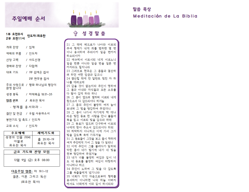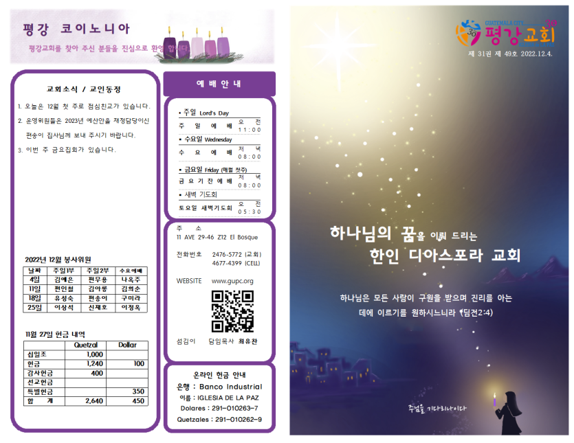 2022년 12월 4일 주일예배 주보 페이지 정보 작성자 과테말라평강교회 댓글 0건 조회 1,732회 작성일 22-12-04 11:49 목록 본문 2022년 12월 4일 주일예배 주보 이전글2022년 12월 11일 주일예배 주보 22.12.11 다음글2022년 11월 27일 주일예배 주보 22.11.27 댓글 0 댓글목록 등록된 댓글이 없습니다.