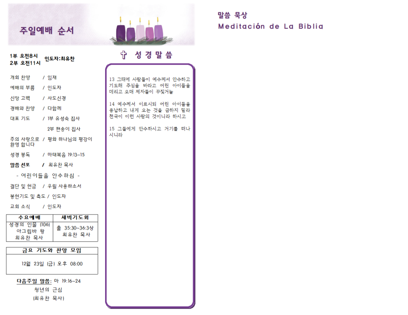 2022년 12월 18일 주일예배 주보 페이지 정보 작성자 과테말라평강교회 댓글 0건 조회 1,688회 작성일 22-12-18 11:43 목록 본문 2022년 12월 18일 주일예배 주보 이전글2022년 12월 25일 주일예배 주보 22.12.27 다음글2022년 12월 11일 주일예배 주보 22.12.11 댓글 0 댓글목록 등록된 댓글이 없습니다.