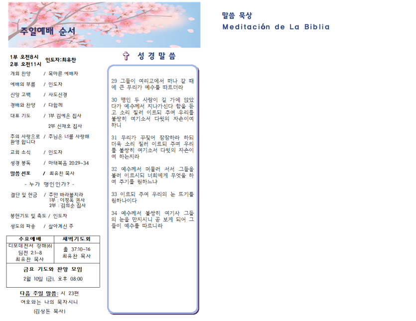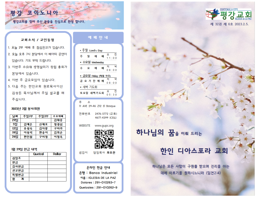 2023년 2월 5일 주일예배 주보 페이지 정보 작성자 과테말라평강교회 댓글 0건 조회 1,599회 작성일 23-02-05 12:50 목록 본문 2023년 2월 5일 주일예배 주보 이전글2023년 2월 12일 주일예배 주보 23.02.12 다음글2023년 1월 22일 주일예배 주보 23.01.21 댓글 0 댓글목록 등록된 댓글이 없습니다.