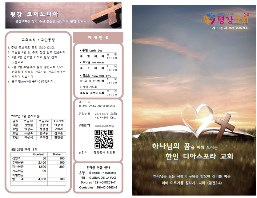 2022년 9월 4일 주일예배 주보 페이지 정보 작성자 과테말라평강교회 댓글 0건 조회 1,800회 작성일 22-09-03 17:52 목록 본문 2022년 9월 4일 주일예배 주보 이전글2022년 9월 11일 주일예배 주보 22.09.10 다음글2022년 8월 28일 주일예배 주보 22.08.29 댓글 0 댓글목록 등록된 댓글이 없습니다.