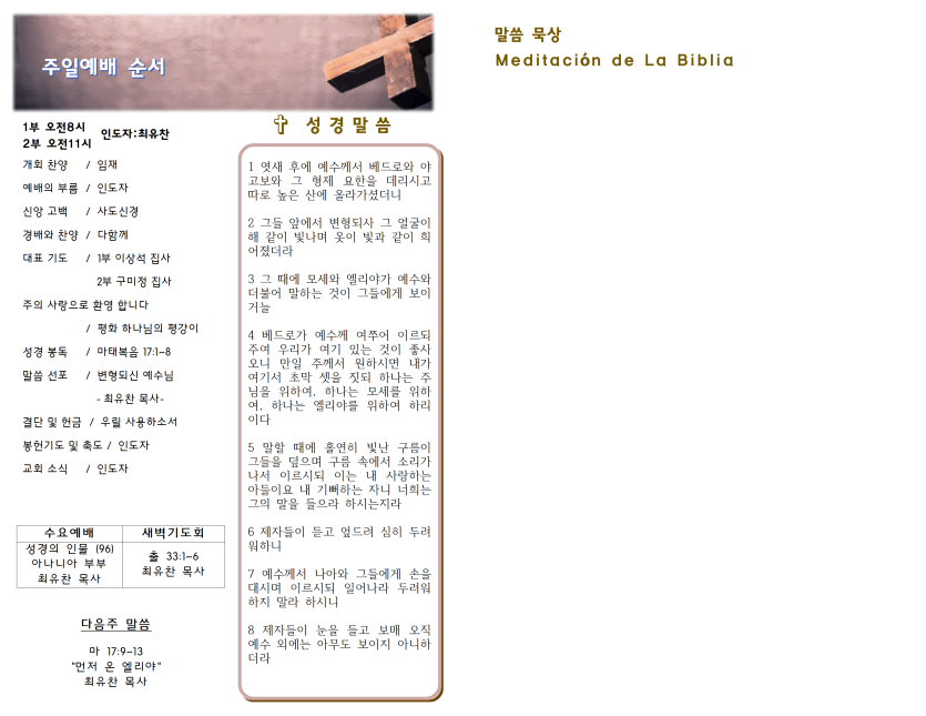 2022년 9월 25일 주일예배 주보 페이지 정보 작성자 과테말라평강교회 댓글 0건 조회 1,776회 작성일 22-09-24 21:54 목록 본문 2022년 9월 25일 주일예배 주보 이전글2022년 10월 2일 주일예배 주보 22.10.01 다음글2022년 9월 18일 주일예배 주보 22.09.17 댓글 0 댓글목록 등록된 댓글이 없습니다.