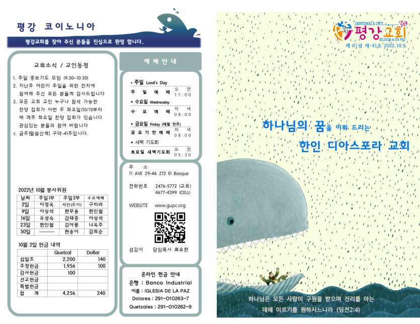 2022년 10월 9일 주일예배 주보 페이지 정보 작성자 과테말라평강교회 댓글 0건 조회 1,755회 작성일 22-10-08 14:45 목록 본문 2022년 10월 9일 주일예배 주보 이전글2022년 10월 16일 주일예배 주보 22.10.15 다음글2022년 10월 2일 주일예배 주보 22.10.01 댓글 0 댓글목록 등록된 댓글이 없습니다.