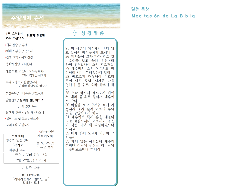 2022년 7월 17일 주일예배 주보 페이지 정보 작성자 과테말라평강교회 댓글 0건 조회 1,903회 작성일 22-07-16 14:39 목록 본문 2022년 7월 17일 주일예배 주보 이전글2022년 7월 24일 주일예배 주보 22.07.25 다음글2022년 7월 10일 주일예배 주보 22.07.09 댓글 0 댓글목록 등록된 댓글이 없습니다.