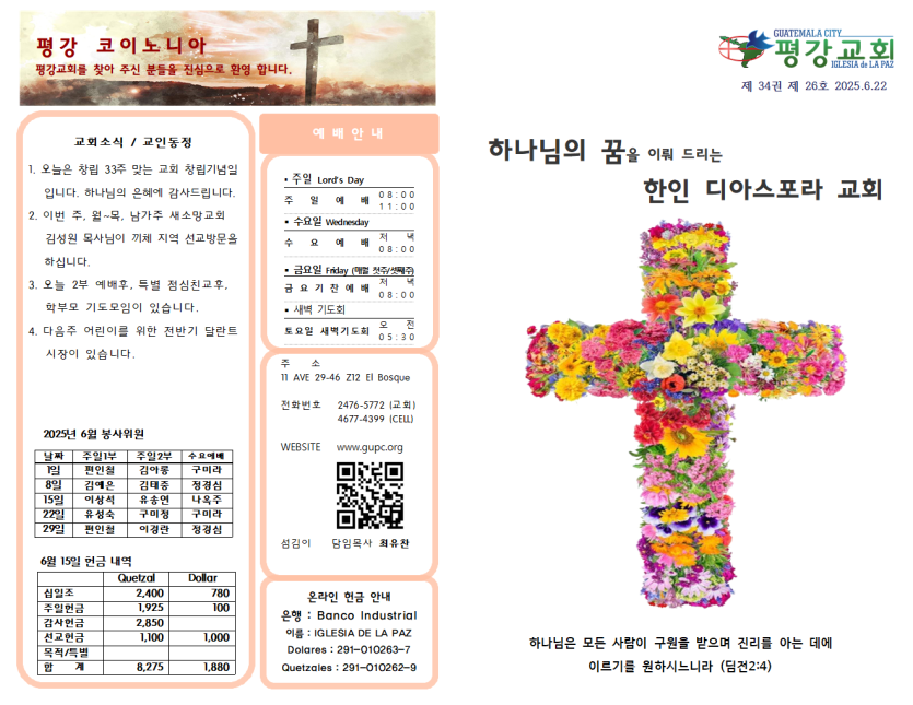 2025년 6월 22일 주일예배 주보 페이지 정보 작성자 과테말라평강교회 댓글 0건 조회 488회 작성일 25-06-22 06:44 목록 본문 2025년 6월 22일 주일예배 주보 이전글2025년 6월 29일 주일예배 주보 25.06.29 다음글2025년 6월 15일 주일예배 주보 25.06.15 댓글 0 댓글목록 등록된 댓글이 없습니다.