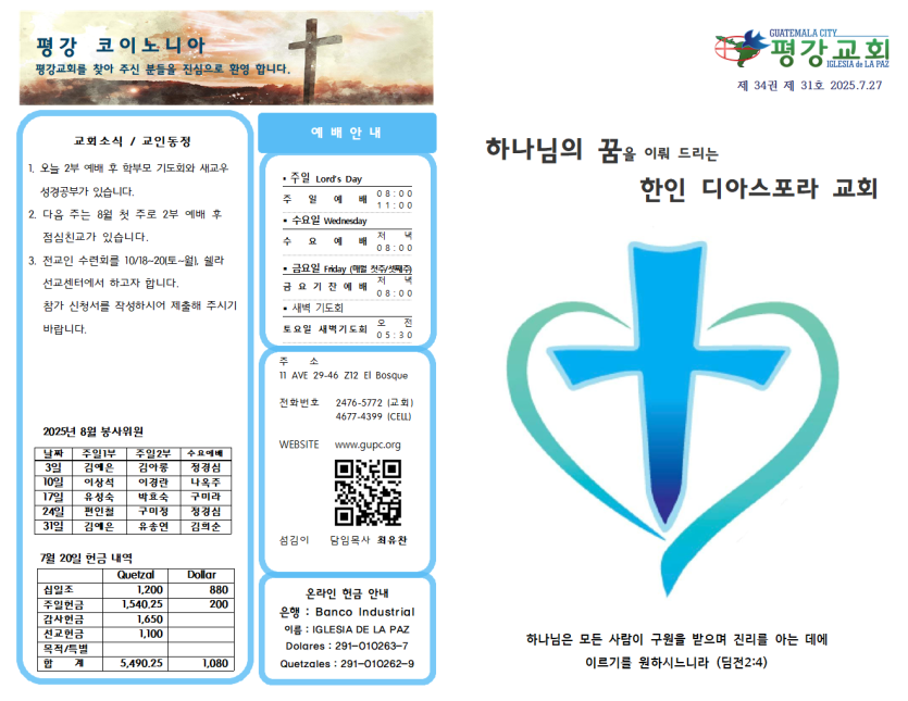2025년 7월 27일 주일예배 주보 페이지 정보 작성자 과테말라평강교회 댓글 0건 조회 424회 작성일 25-07-27 06:46 목록 본문 2025년 7월 27일 주일예배 주보 이전글2025년 8월 3일 주일예배 주보 25.08.03 다음글2025년 7월 20일 주일예배 주보 25.07.20 댓글 0 댓글목록 등록된 댓글이 없습니다.