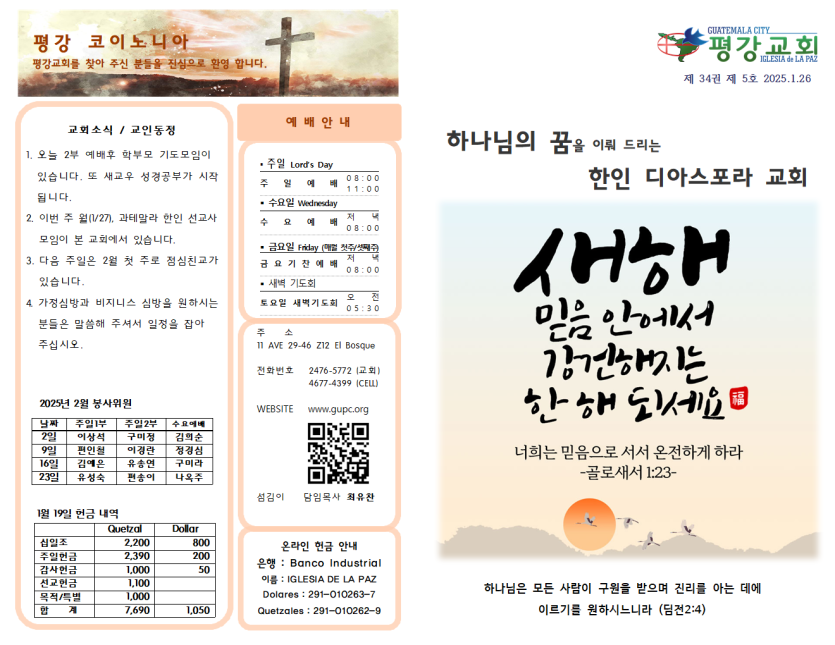 2025년 1월 26일 주일예배 주보 페이지 정보 작성자 과테말라평강교회 댓글 0건 조회 646회 작성일 25-01-24 19:57 목록 본문 2025년 1월 26일 주일예배 주보 이전글2025년 2월 2일 주일예배 주보 25.02.01 다음글2025년 1월 19일 주일예배 주보 25.01.18 댓글 0 댓글목록 등록된 댓글이 없습니다.
