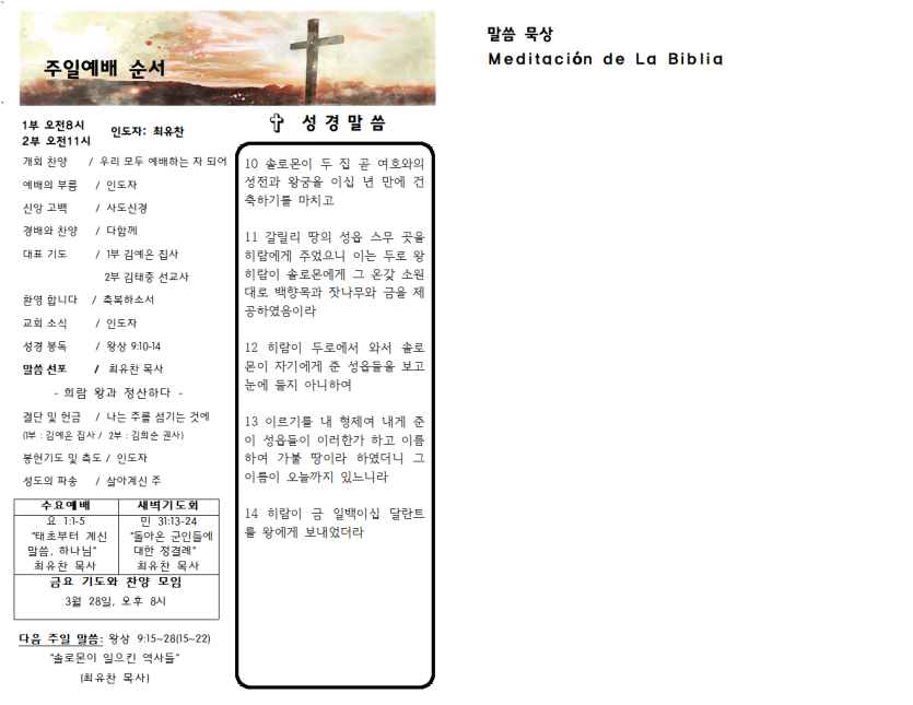 2025년 3월 23일 주일예배 주보 페이지 정보 작성자 과테말라평강교회 댓글 0건 조회 577회 작성일 25-03-22 14:18 목록 본문 2025년 3월 23일 주일예배 주보 이전글2025년 3월 30일 주일예배 주보 25.03.30 다음글2025년 3월 16일 주일예배 주보 25.03.14 댓글 0 댓글목록 등록된 댓글이 없습니다.