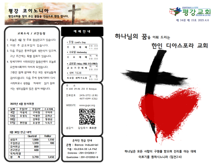 2025년 4월 6일 주일예배 주보 페이지 정보 작성자 과테말라평강교회 댓글 0건 조회 573회 작성일 25-04-05 17:44 목록 본문 2025년 4월 6일 주일예배 주보 이전글2025년 4월 13일 주일예배 주보 25.04.12 다음글2025년 3월 30일 주일예배 주보 25.03.30 댓글 0 댓글목록 등록된 댓글이 없습니다.
