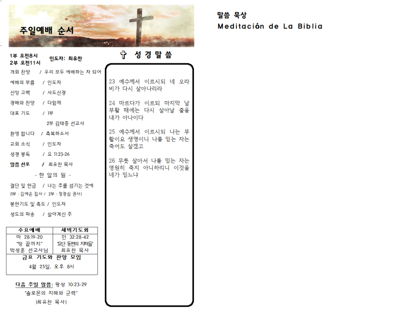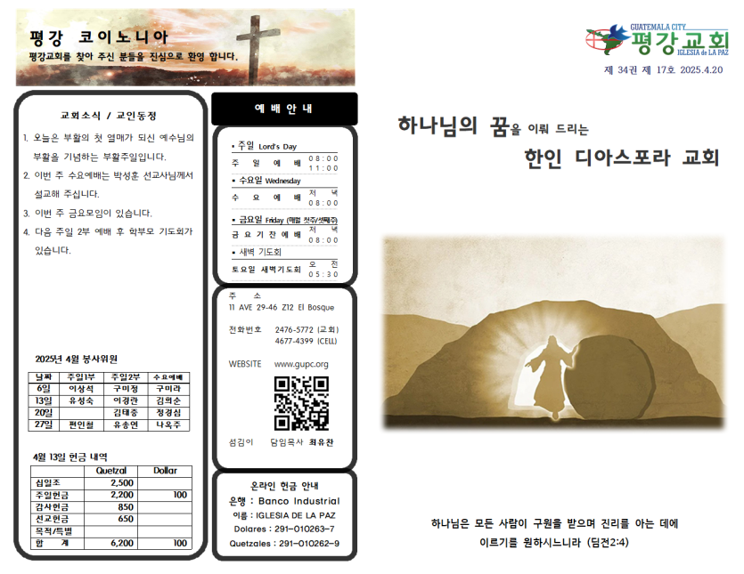 2025년 4월 20일 주일예배 주보 페이지 정보 작성자 과테말라평강교회 댓글 0건 조회 539회 작성일 25-04-19 10:27 목록 본문 2025년 4월 20일 주일예배 주보 이전글2025년 4월 27일 주일예배 주보 25.04.27 다음글2025년 4월 13일 주일예배 주보 25.04.12 댓글 0 댓글목록 등록된 댓글이 없습니다.