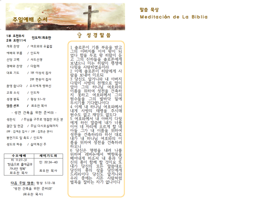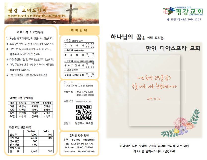 2024년 10월 27일 주일예배 주보 페이지 정보 작성자 과테말라평강교회 댓글 0건 조회 845회 작성일 24-10-26 17:36 목록 본문 2024년 10월 27일 주일예배 주보 이전글2024년 11월 3일 주일예배 주보 24.11.02 다음글2024년 10월 20일 주일예배 주보 24.10.19 댓글 0 댓글목록 등록된 댓글이 없습니다.