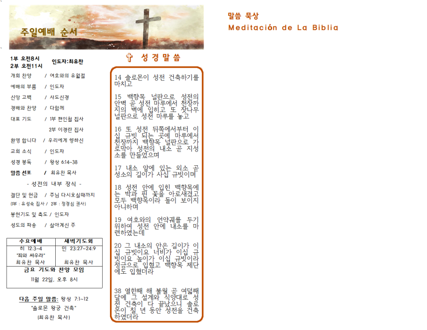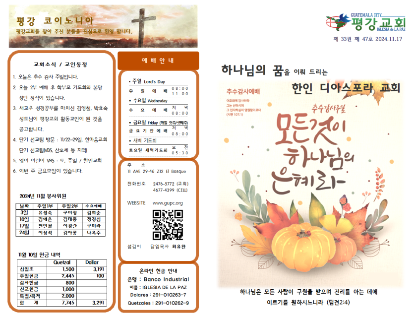 2024년 11월 17일 주일예배 주보 페이지 정보 작성자 과테말라평강교회 댓글 0건 조회 846회 작성일 24-11-16 17:39 목록 본문 2024년 11월 17일 주일예배 주보 이전글2024년 11월 24일 주일예배 주보 24.11.24 다음글2024년 11월 10일 주일예배 주보 24.11.10 댓글 0 댓글목록 등록된 댓글이 없습니다.