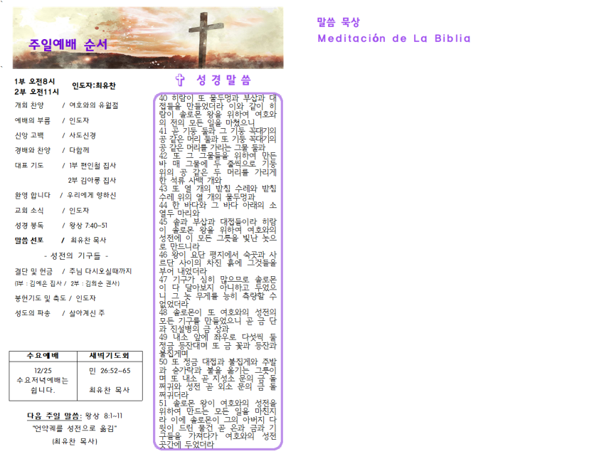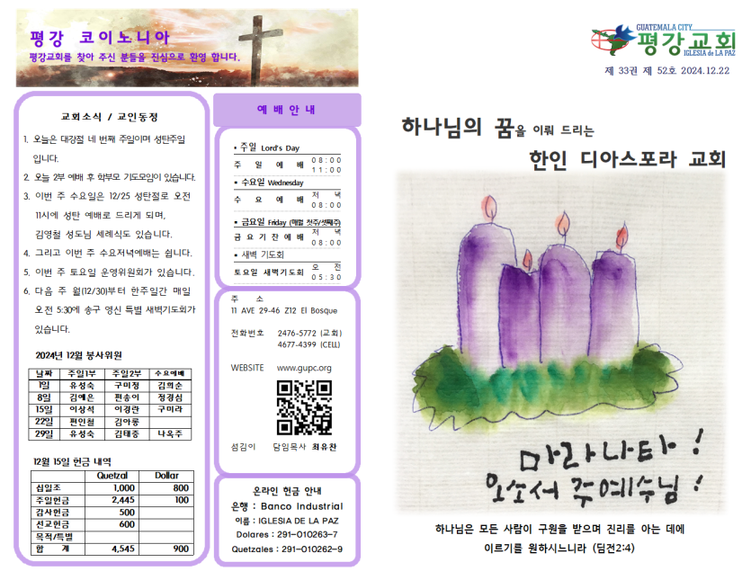 2024년 12월 22일 주일예배 주보 페이지 정보 작성자 과테말라평강교회 댓글 0건 조회 733회 작성일 24-12-22 06:49 목록 본문 2024년 12월 22일 주일예배 주보 이전글2024년 12월 28일 주일예배 주보 24.12.28 다음글2024년 12월 8일 주일예배 주보 24.12.08 댓글 0 댓글목록 등록된 댓글이 없습니다.