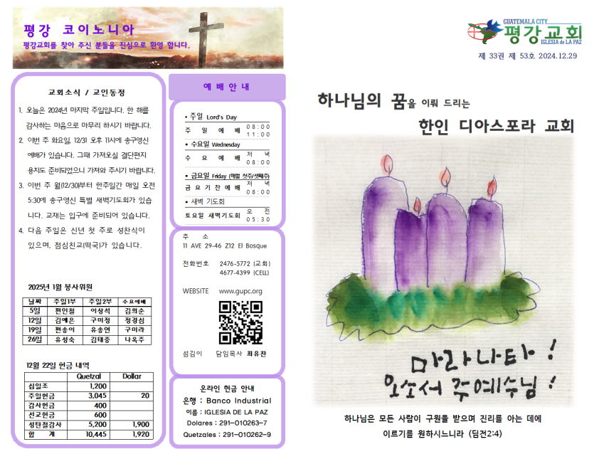 2024년 12월 28일 주일예배 주보 페이지 정보 작성자 과테말라평강교회 댓글 0건 조회 720회 작성일 24-12-28 17:40 목록 본문 2024년 12월 28일 주일예배 주보 이전글2025년 1월 5일 주일예배 주보 25.01.04 다음글2024년 12월 22일 주일예배 주보 24.12.22 댓글 0 댓글목록 등록된 댓글이 없습니다.