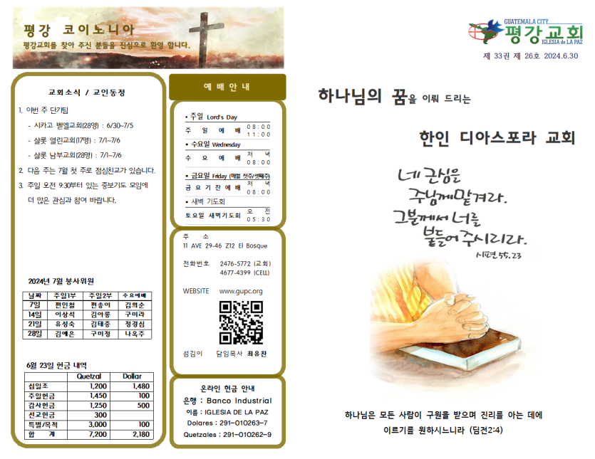 2024년 6월 30일 주일예배 주보 페이지 정보 작성자 과테말라평강교회 댓글 0건 조회 960회 작성일 24-06-29 10:23 목록 본문 2024년 6월 30일 주일예배 주보 이전글2024년 7월 7일 주일예배 주보 24.07.06 다음글2024년 6월 23일 주일예배 주보 24.06.22 댓글 0 댓글목록 등록된 댓글이 없습니다.