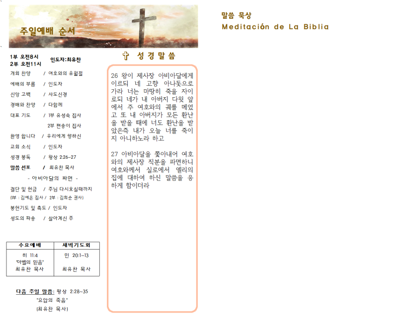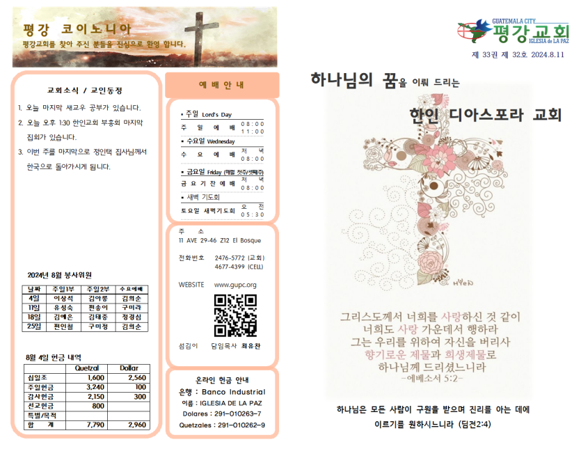 2024년 8월 11일 주일예배 주보 페이지 정보 작성자 과테말라평강교회 댓글 0건 조회 912회 작성일 24-08-10 14:30 목록 본문 2024년 8월 11일 주일예배 주보 이전글2024년 8월 25일 주일예배 주보 24.08.24 다음글2024년 8월 4일 주일예배 주보 24.08.03 댓글 0 댓글목록 등록된 댓글이 없습니다.