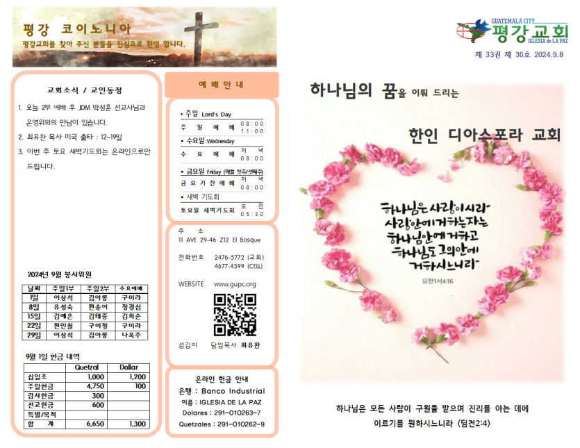 2024년 9월 8일 주일예배 주보 페이지 정보 작성자 과테말라평강교회 댓글 0건 조회 888회 작성일 24-09-06 20:16 목록 본문 2024년 9월 8일 주일예배 주보 이전글2024년 9월 15일 주일예배 주보 24.09.13 다음글2024년 9월 1일 주일예배 주보 24.08.31 댓글 0 댓글목록 등록된 댓글이 없습니다.