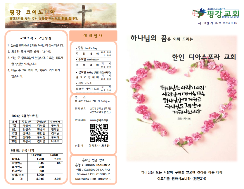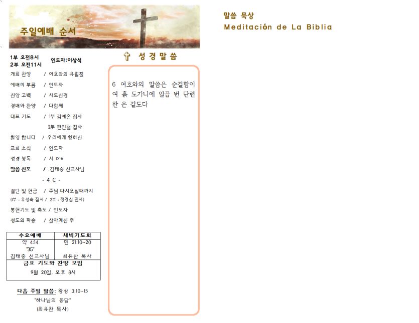 2024년 9월 15일 주일예배 주보 페이지 정보 작성자 과테말라평강교회 댓글 0건 조회 889회 작성일 24-09-13 17:26 목록 본문 2024년 9월 15일 주일예배 주보 이전글2024년 9월 22일 주일예배 주보 24.09.20 다음글2024년 9월 8일 주일예배 주보 24.09.06 댓글 0 댓글목록 등록된 댓글이 없습니다.