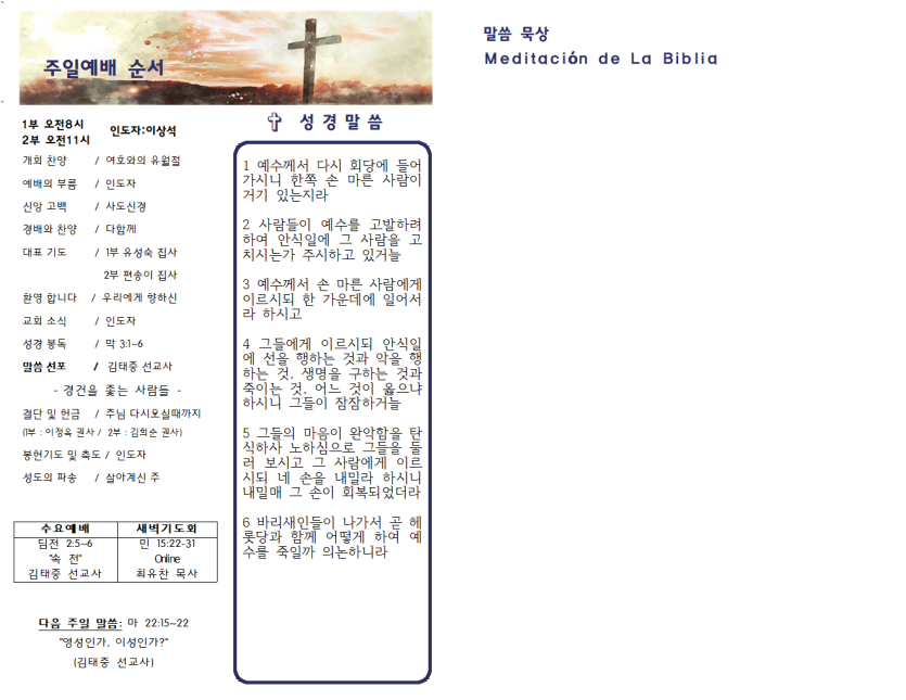 2024년 4월 21일 주일예배 주보 페이지 정보 작성자 과테말라평강교회 댓글 0건 조회 1,038회 작성일 24-04-20 08:13 목록 본문 2024년 4월 21일 주일예배 주보 이전글2024년 4월 28일 주일예배 주보 24.04.27 다음글2024년 4월 14일 주일예배 주보 24.04.13 댓글 0 댓글목록 등록된 댓글이 없습니다.