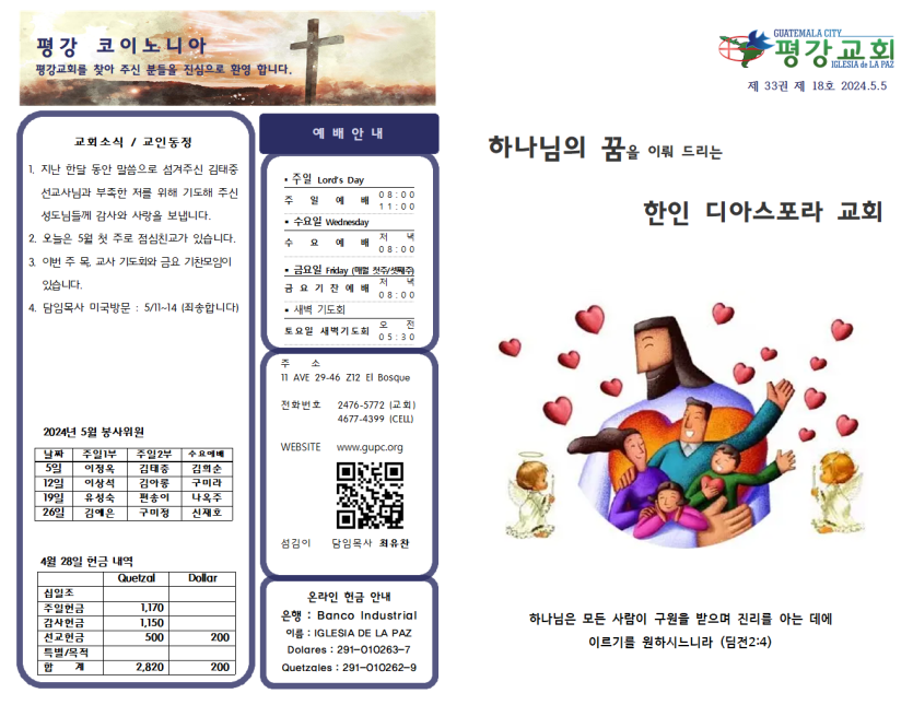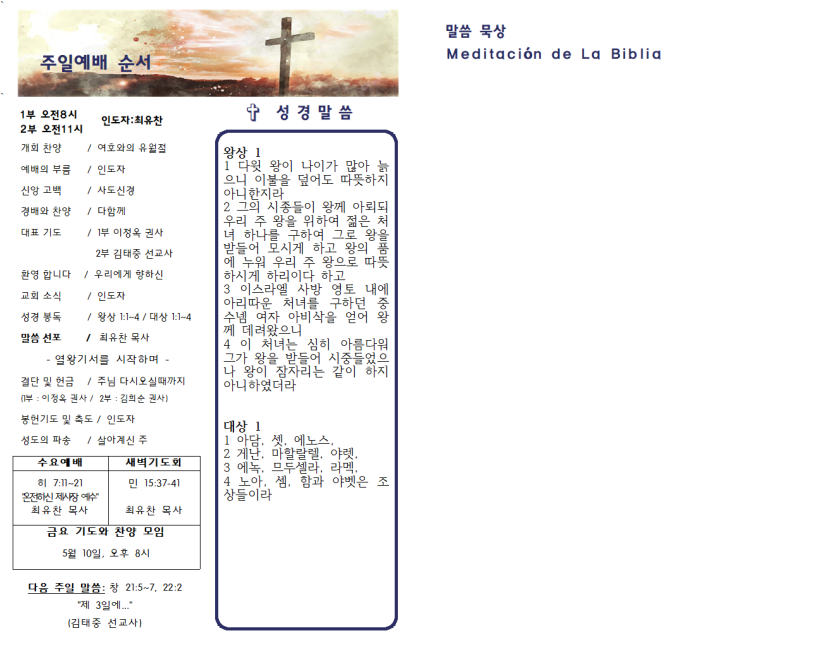 2024년 5월 5일 주일예배 주보 페이지 정보 작성자 과테말라평강교회 댓글 0건 조회 1,040회 작성일 24-05-04 15:10 목록 본문 2024년 5월 5일 주일예배 주보 이전글2024년 5월 19일 주일예배 주보 24.05.18 다음글2024년 4월 28일 주일예배 주보 24.04.27 댓글 0 댓글목록 등록된 댓글이 없습니다.