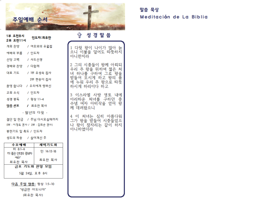 2024년 5월 19일 주일예배 주보 페이지 정보 작성자 과테말라평강교회 댓글 0건 조회 1,017회 작성일 24-05-18 08:30 목록 본문 2024년 5월 19일 주일예배 주보 이전글2024년 5월 26일 주일예배 주보 24.05.25 다음글2024년 5월 5일 주일예배 주보 24.05.04 댓글 0 댓글목록 등록된 댓글이 없습니다.