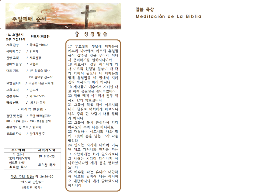 2023년 11월 12일 주일예배 주보 페이지 정보 작성자 과테말라평강교회 댓글 0건 조회 1,158회 작성일 23-11-11 15:10 목록 본문 2023년 11월 12일 주일예배 주보 이전글2023년 11월 19일 주일예배 주보 23.11.18 다음글2023년 11월 5일 주일예배 주보 23.11.04 댓글 0 댓글목록 등록된 댓글이 없습니다.