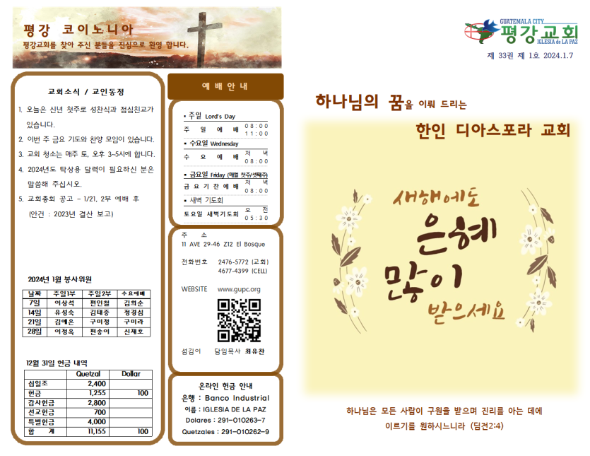 2024년 1월 7일 주일예배 주보 페이지 정보 작성자 과테말라평강교회 댓글 0건 조회 1,121회 작성일 24-01-06 10:06 목록 본문 2024년 1월 7일 주일예배 주보 이전글2024년 1월 14일 주일예배 주보 24.01.13 다음글2023년 12월 31일 주일예배 주보 23.12.30 댓글 0 댓글목록 등록된 댓글이 없습니다.