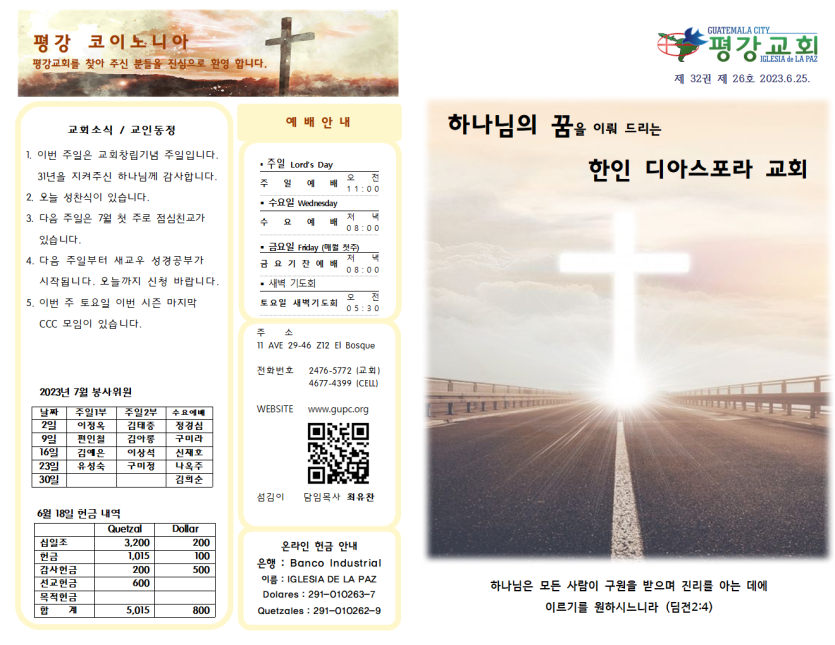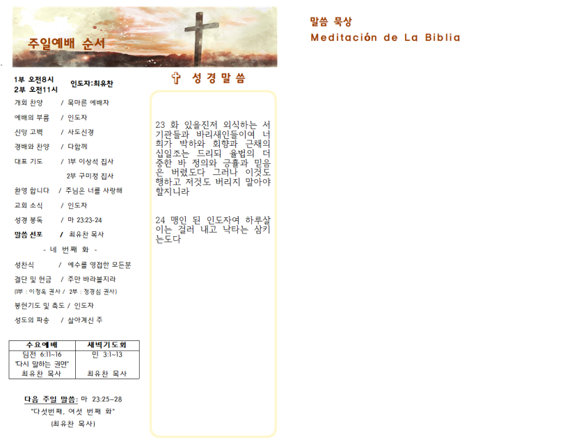 2023년 6월 25일 주일예배 주보 페이지 정보 작성자 과테말라평강교회 댓글 0건 조회 1,337회 작성일 23-06-24 17:42 목록 본문 2023년 6월 25일 주일예배 주보 이전글2023년 7월 2일 주일예배 주보 23.07.01 다음글2023년 6월 11일 주일예배 주보 23.06.10 댓글 0 댓글목록 등록된 댓글이 없습니다.