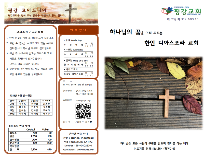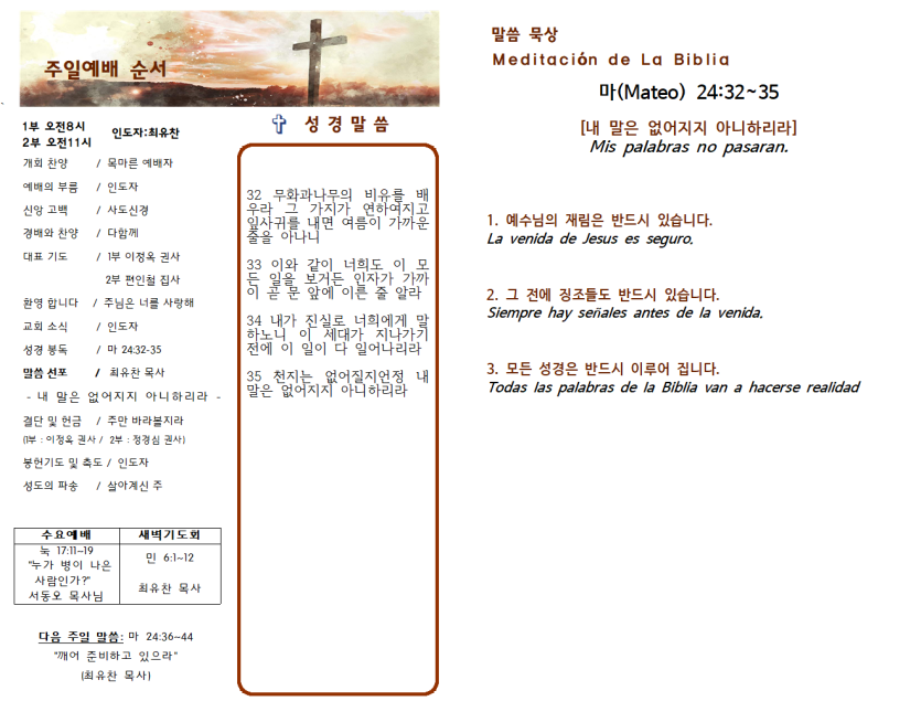 2023년 9월 3일 주일예배 주보 페이지 정보 작성자 과테말라평강교회 댓글 0건 조회 1,289회 작성일 23-09-02 15:47 목록 본문 2023년 9월 3일 주일예배 주보 이전글2023년 9월 10일 주일예배 주보 23.09.09 다음글2023년 8월 27일 주일예배 주보 23.08.26 댓글 0 댓글목록 등록된 댓글이 없습니다.
