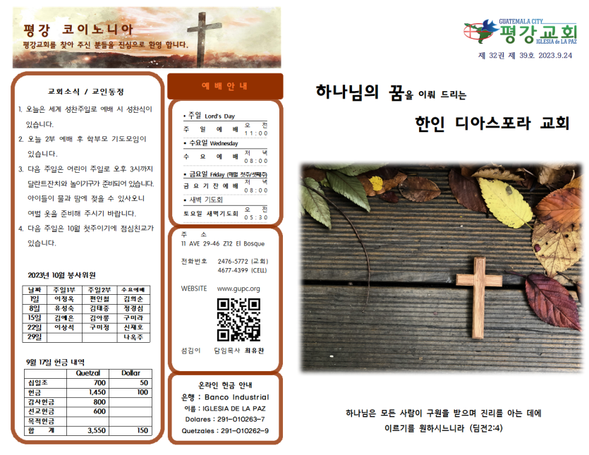 2023년 9월 24일 주일예배 주보 페이지 정보 작성자 과테말라평강교회 댓글 0건 조회 1,312회 작성일 23-09-23 17:20 목록 본문 2023년 9월 24일 주일예배 주보 이전글2023년 10월 1일 주일예배 주보 23.09.30 다음글2023년 9월 17일 주일예배 주보 23.09.16 댓글 0 댓글목록 등록된 댓글이 없습니다.