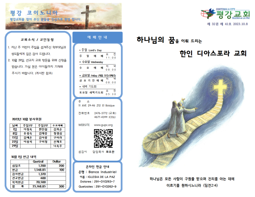 2023년 10월 8일 주일예배 주보 페이지 정보 작성자 과테말라평강교회 댓글 0건 조회 1,197회 작성일 23-10-07 19:00 목록 본문 2023년 10월 8일 주일예배 주보 이전글2023년 10월 15일 주일예배 주보 23.10.14 다음글2023년 10월 1일 주일예배 주보 23.09.30 댓글 0 댓글목록 등록된 댓글이 없습니다.
