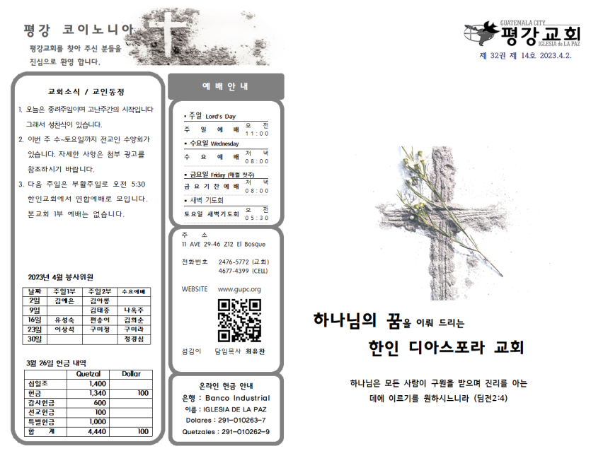 2023년 4월 2일 주일예배 주보 페이지 정보 작성자 과테말라평강교회 댓글 0건 조회 1,475회 작성일 23-04-01 17:14 목록 본문 2023년 4월 2일 주일예배 주보 이전글2023년 4월 9일 주일예배 주보 23.04.09 다음글2023년 3월 26일 주일예배 주보 23.03.25 댓글 0 댓글목록 등록된 댓글이 없습니다.