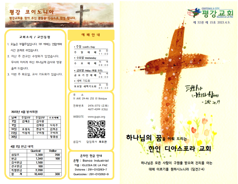 2023년 4월 9일 주일예배 주보 페이지 정보 작성자 과테말라평강교회 댓글 0건 조회 1,485회 작성일 23-04-09 08:48 목록 본문 2023년 4월 9일 주일예배 주보 이전글2023년 4월 16일 주일예배 주보 23.04.15 다음글2023년 4월 2일 주일예배 주보 23.04.01 댓글 0 댓글목록 등록된 댓글이 없습니다.